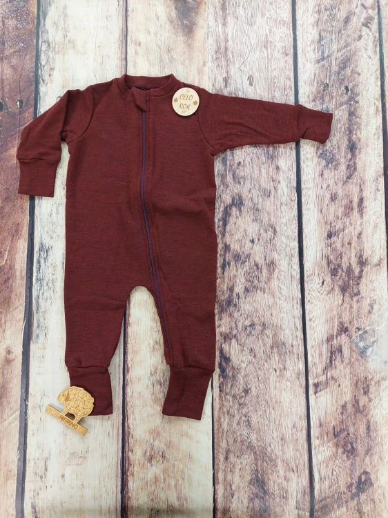Jemné pyžamko/overal z merino vlny - Rubín.