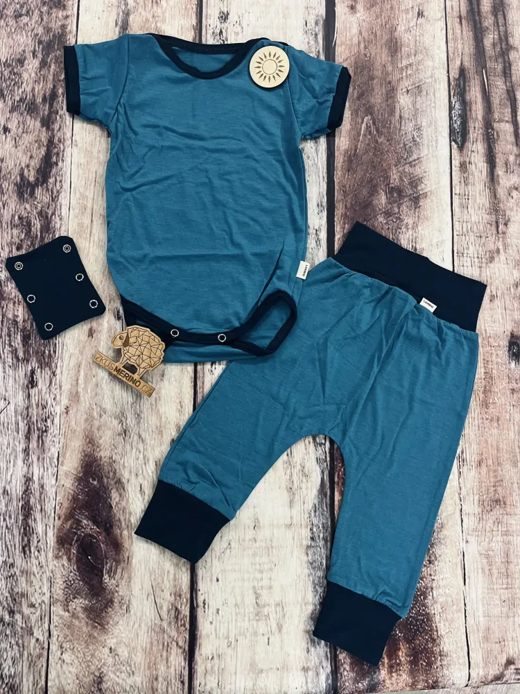 - Rostoucí letní MERINO komplet Lambio, KR - Petrol/tm.modrý lem*