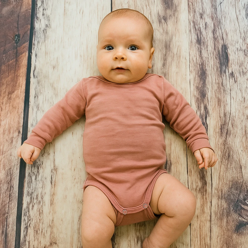 Rostoucí merino body s dlouhým rukávem - Dusty rose.