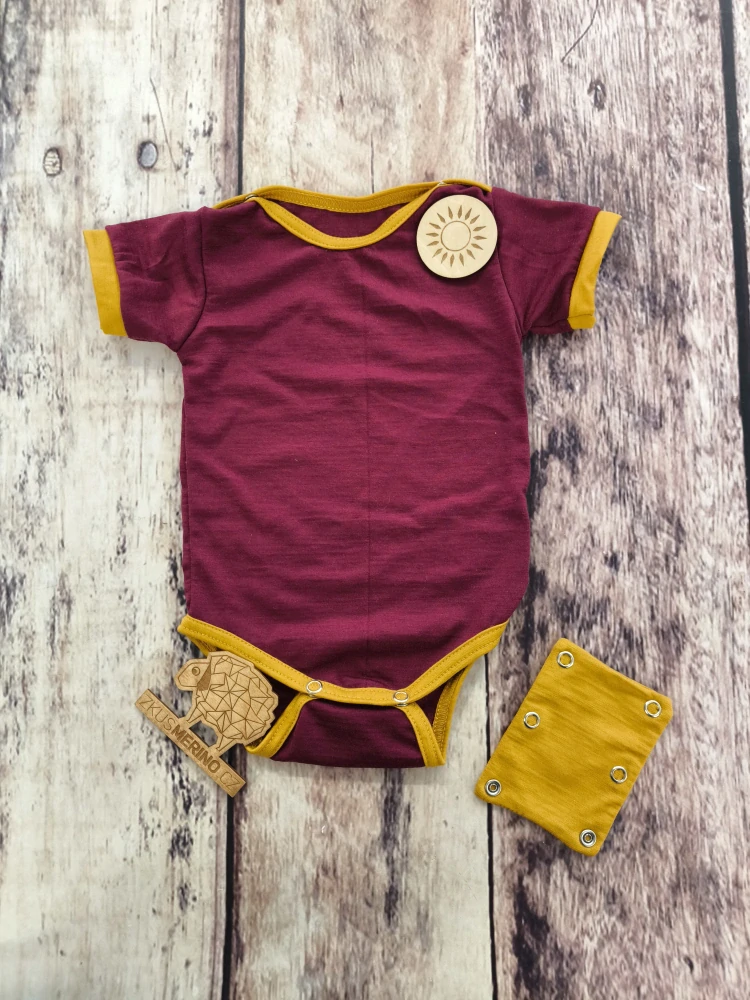 Rostoucí letní MERINO body Lambio, KR - Vínová/kari lem*