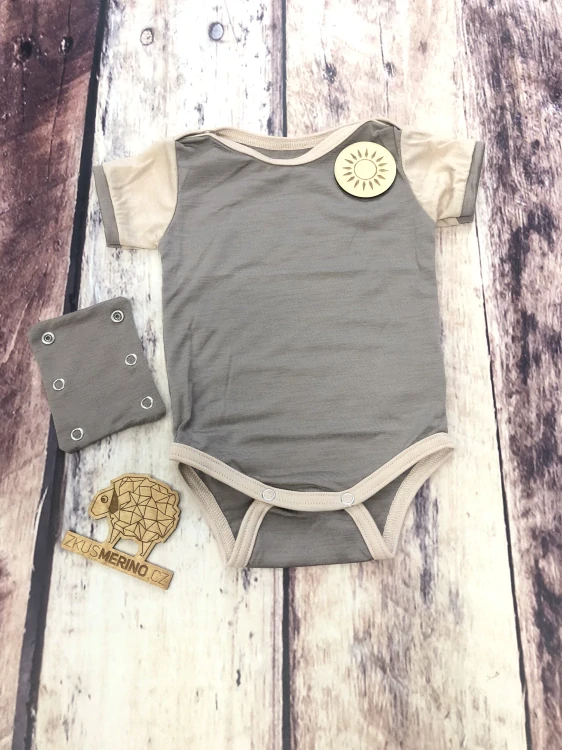 - Rostoucí letní MERINO body Lambio, KR - Oříšek/pískový lem*
