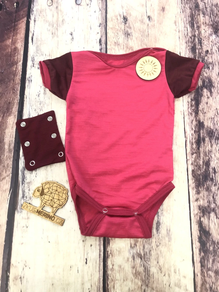 Rostoucí letní MERINO body Lambio, KR - Růžová/bordó rukáv*