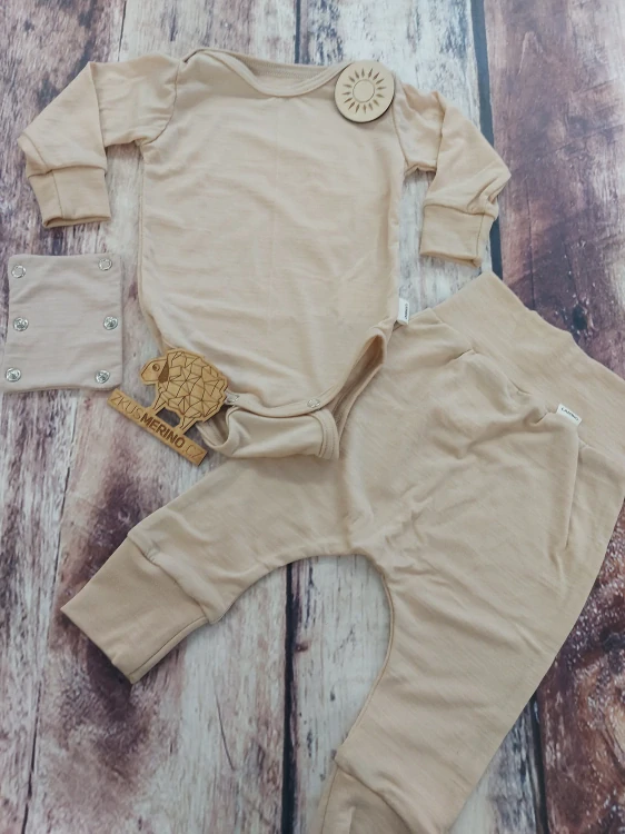 Merino komplet s dlouhým rukávem - Pískový.