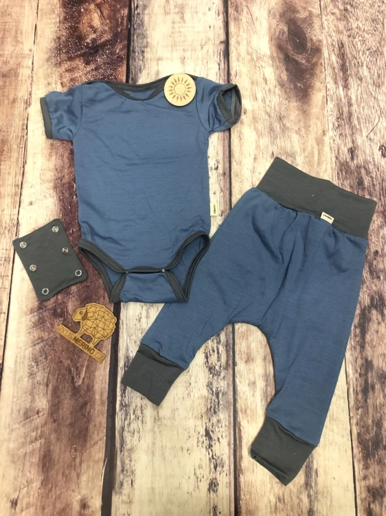 Rostoucí letní komplet - body a harémky, z úžasně tenkého merina, které je velmi jemné, vyráběné jako mulesing free a má super wash úpravu.