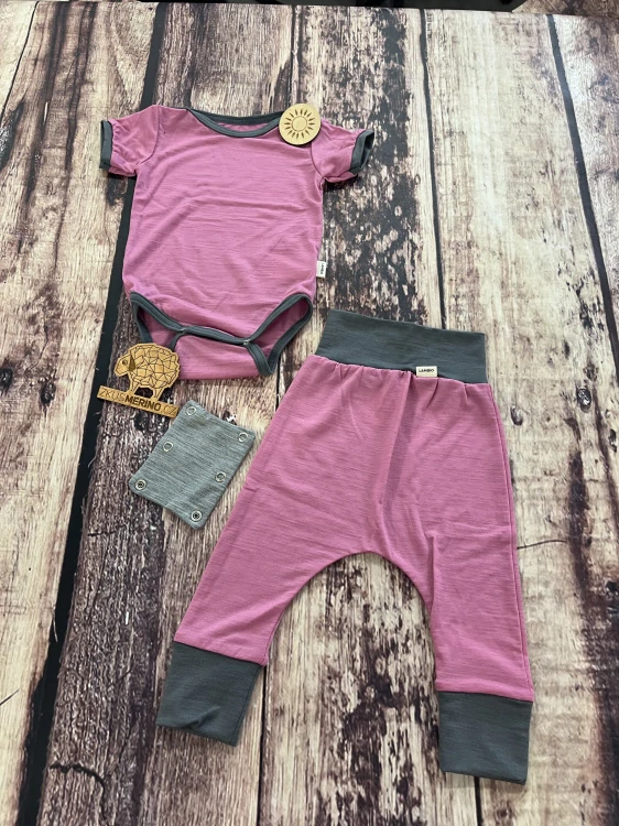Rostoucí letní komplet - body a harémky, z úžasně tenkého merina, které je velmi jemné, vyráběné jako mulesing free a má super wash úpravu.