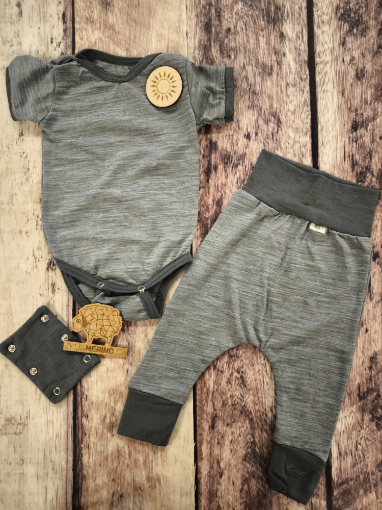 Rostoucí letní komplet - body a harémky, z úžasně tenkého merina, které je velmi jemné, vyráběné jako mulesing free a má super wash úpravu.