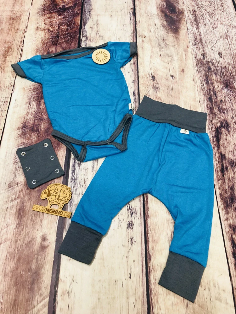 Rostoucí letní MERINO komplet Lambio, KR - Tyrkys/šedý lem*Sklademcena od 947 Kč/ kscena od 783 Kč bez DPH