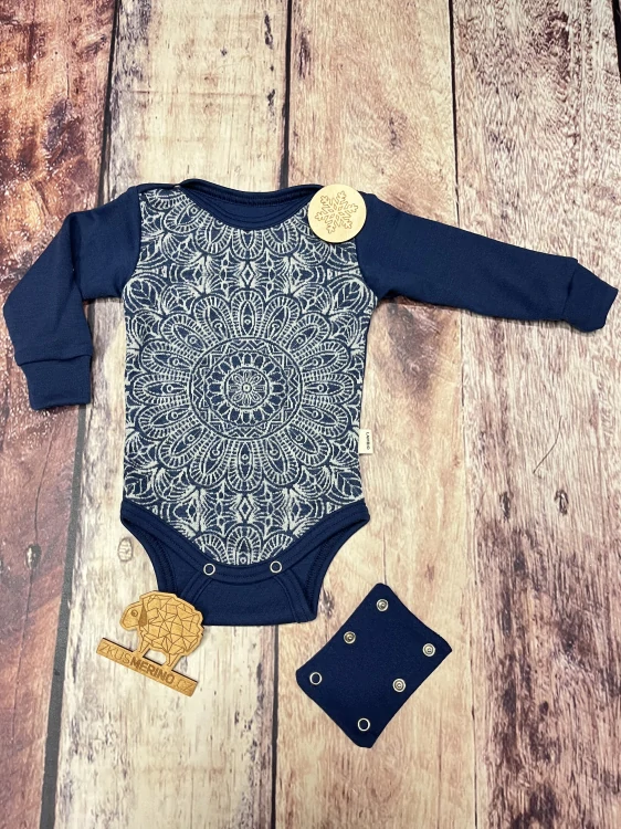 Merino body s dlouhým rukávem - Mandala modrá/navy.