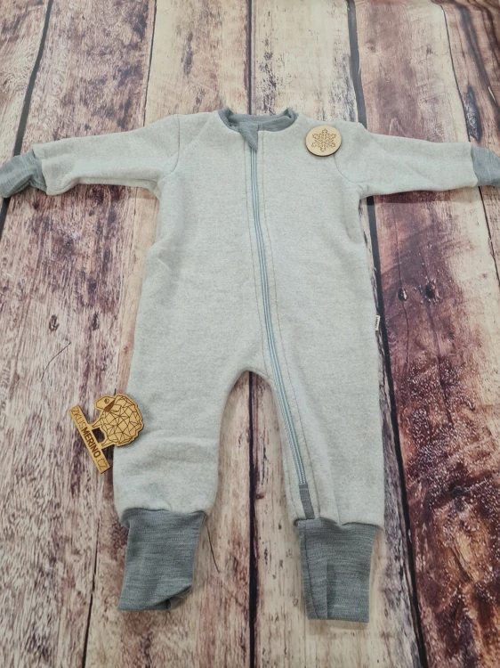 Overal je ušit z nejjemnějšího finského merina. Je šitý jako rozšířený, používá se zejména jako druhá vrstva na ven. Skvělý je ale i na spaní při nižších teplotách a zejména, když se dítě odkopává.