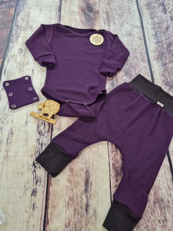 ⚠️ Upozornění: Vzhledem k jemnosti merina nedoporučujeme komplet pro celodenní nošení u aktivně lezoucích miminek, případně jen jako spodní vrtsvu pod odolnější materiál 😉