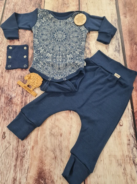 Merino komplet s dlouhým rukávem - Mandala modrá/navy.