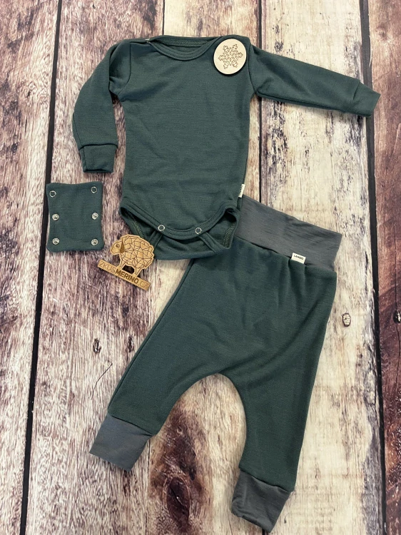 Merino komplet s dlouhým rukávem - Šalvěj.