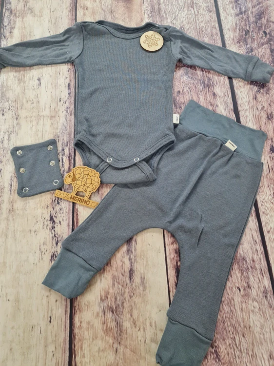 ⚠️ Upozornění: Vzhledem k jemnosti merina nedoporučujeme komplet pro celodenní nošení u aktivně lezoucích miminek, případně jen jako spodní vrtsvu pod odolnější materiál 😉