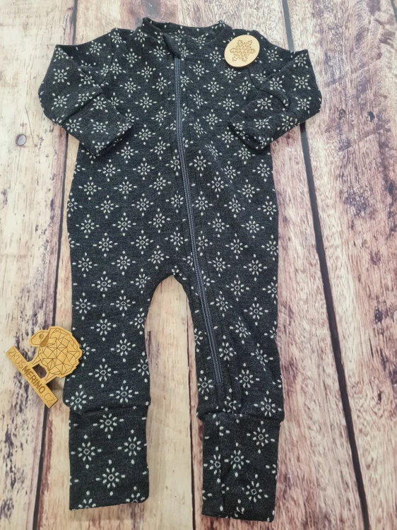Rostoucí zimní overal Lambio z úžasně měkkého a hřejivého finského merina. Požadovaná údržba vzorovaného merina zde.