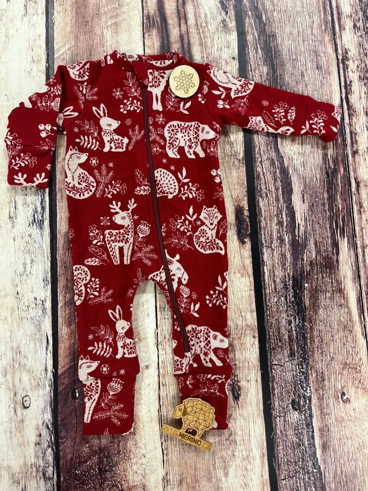 Rostoucí zimní MERINO overal Lambio, DR - Zvířátka červená