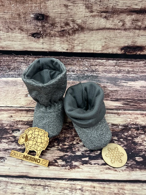 Capáčky pro miminko jsou šité podle vlastního střihu a určené dětem, které ještě samy nechodí. Capáčky jsou ušity ze softshellu v šedé, univerzální barvě, skvěle tak sluší chlapečkům i holčičkám. Ochrání nožičku před vlhkem, větrem, chladem - při lezení, v krosně, v šátku, či nosítku, v kočárku i v autosedačce.