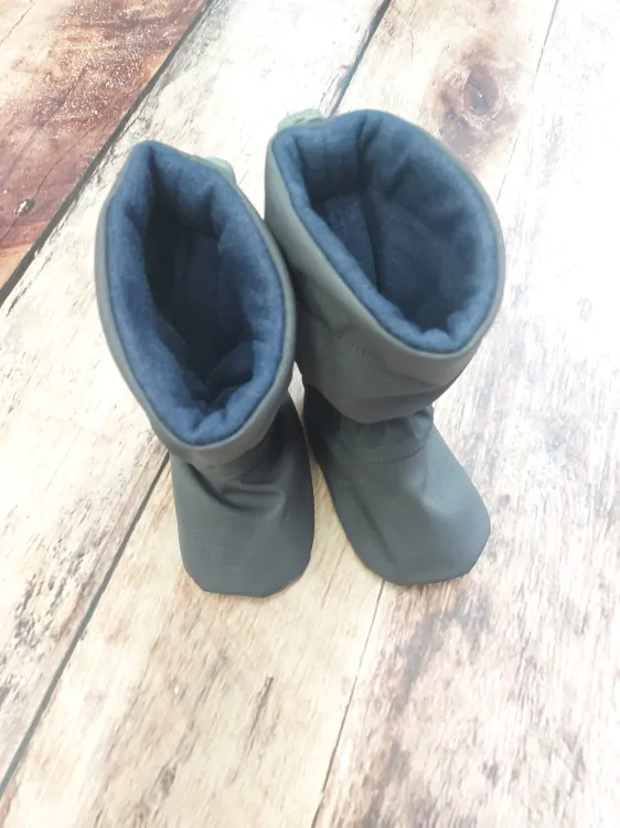 Třívrstvé capáčky pro miminko jsou šité podle vlastního střihu a určené dětem, které ještě samy nechodí. Capáčky jsou ušity ze softshellu v šedé, univerzální barvě, skvěle tak sluší chlapečkům i holčičkám. Ochrání nožičku před vlhkem, větrem, chladem - při lezení, v krosně, v šátku, či nosítku, v kočárku i v autosedačce.
