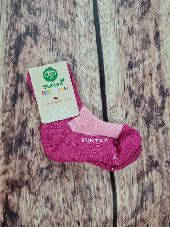 Teplé Surtex merino ponožky pro děti - volný lem. Opravdu teplé merino ponožky určené na zimu. Značení velikosti je podle skutečných cm velikosti nohy, ne podle velikosti boty. Tabulka velikostí viz níže. Upozornění: barvy ponožek výrobce v průběhu sezóny často mění, vyrábí se různé kombinace barev ... celý popis