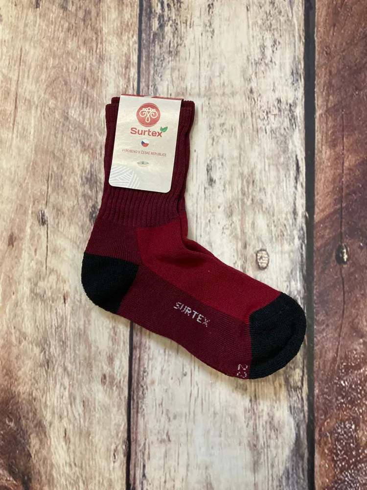 Hřejivé merino ponožky pro dospělé s volným lemem. Ponožky se 75% podílem merino vlny s vnitřní froté úpravou v oblasti chodidla a nártu. Výhody ponožek Surtex: anatomické tvarování osvědčení o zdravotní nezávadnosti volný lem v oblasti lýtka Moderní design a funkční prvky zajistí pohodlné nošení ... celý popis