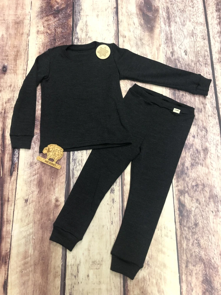 Dětský set termoprádla z merino vlny - Antracit.