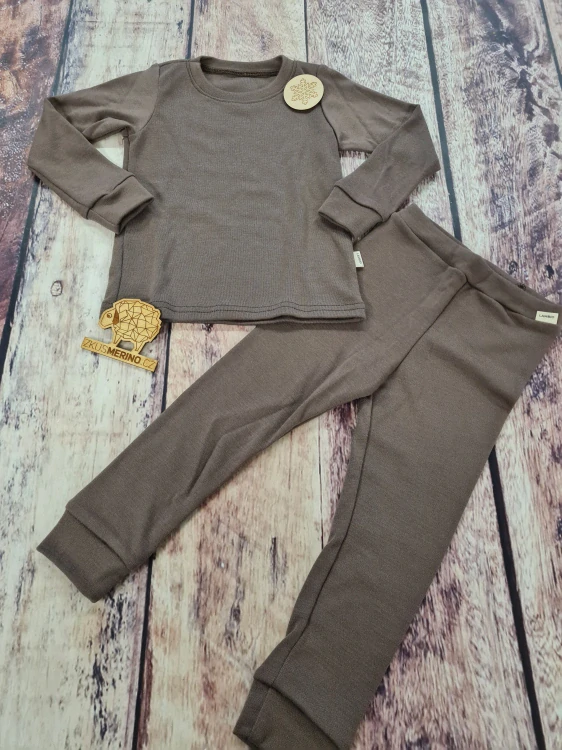 Zimní MERINO komplet / pyžamo Lambio - Kávový*