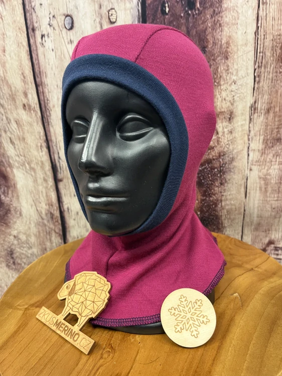 - Zimní MERINO kukla Lambio - Sangria/navy lem