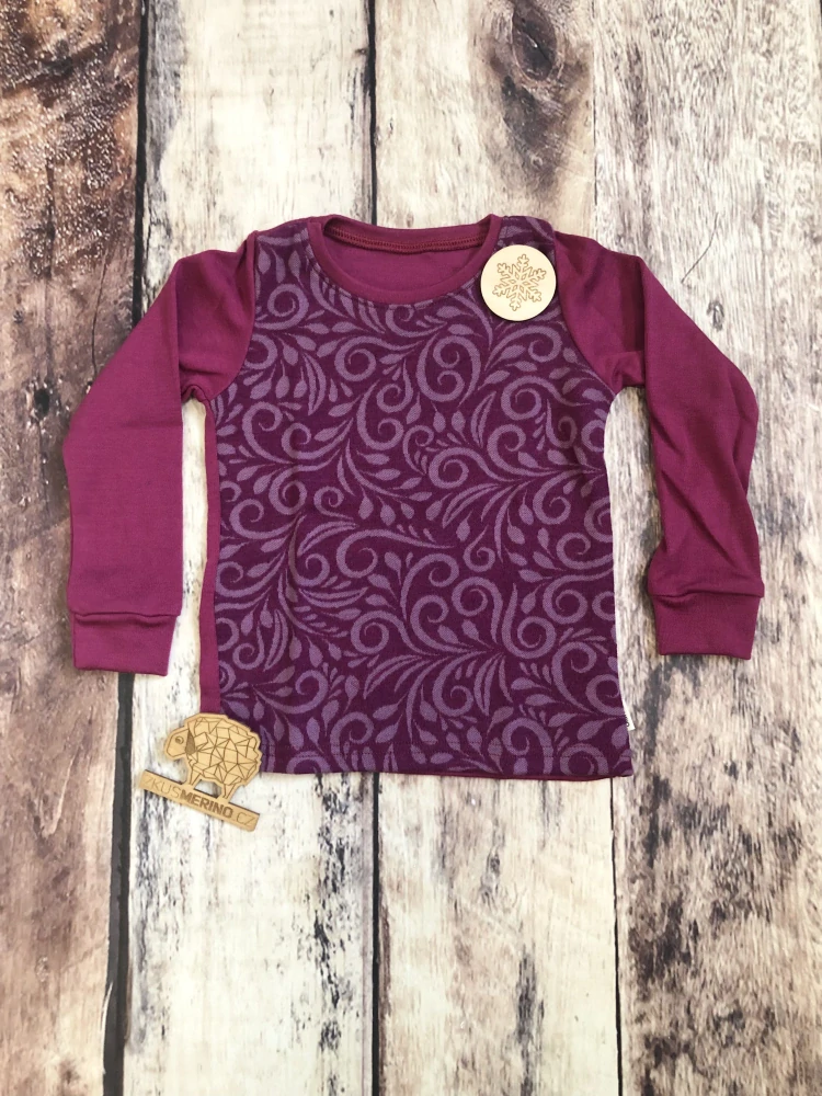 Merino triko s dlouhým rukávem - Kudrlinky/sangria.