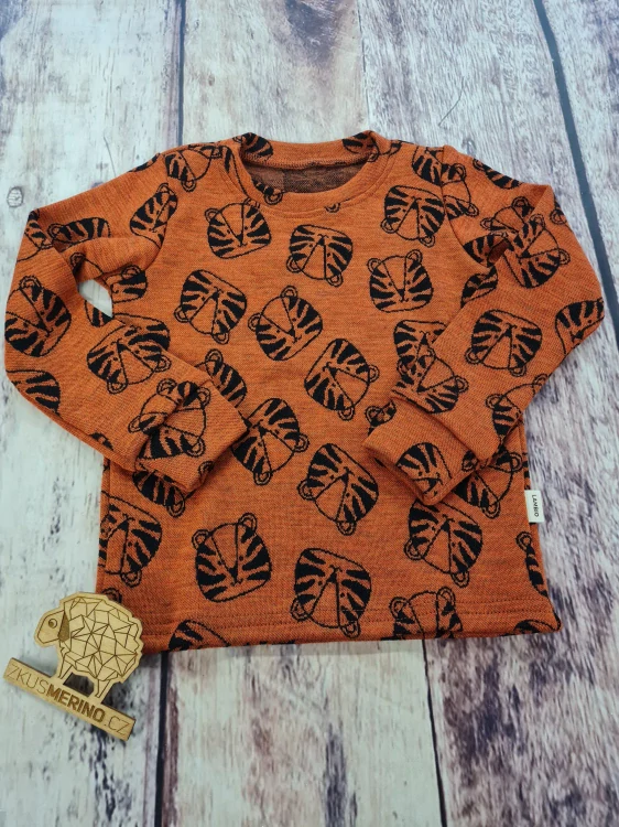 Merino triko s dlouhým rukávem - Tygři oranžové.